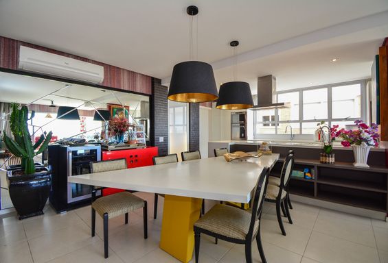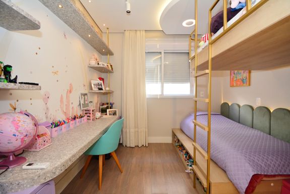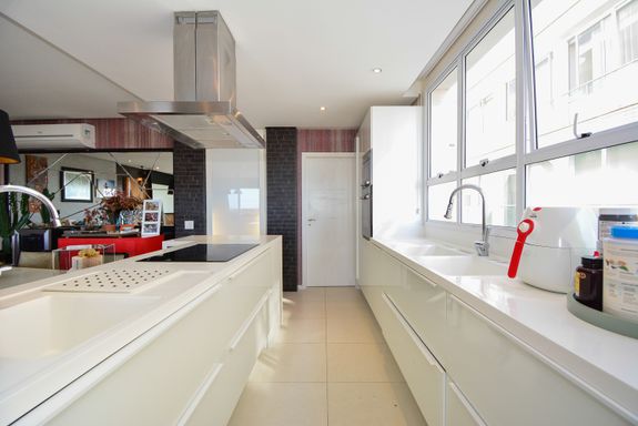 Além das áreas íntimas e sociais, o imóvel conta com dependência de serviço completa, lavanderia funcional e quatro vagas de garagem. O edifício oferece ainda uma infraestrutura completa: piscina com borda infinita, salão de festas com design contemporâneo, segurança e privacidade total.